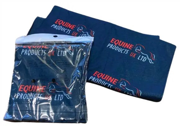 Hochwertiger Snood von Equine Products U.K mit Logo in Marineblau.